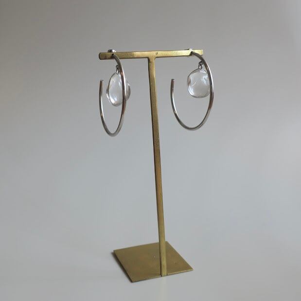 大きいフープピアスにシーグラスチャームが目を引くデザイン。